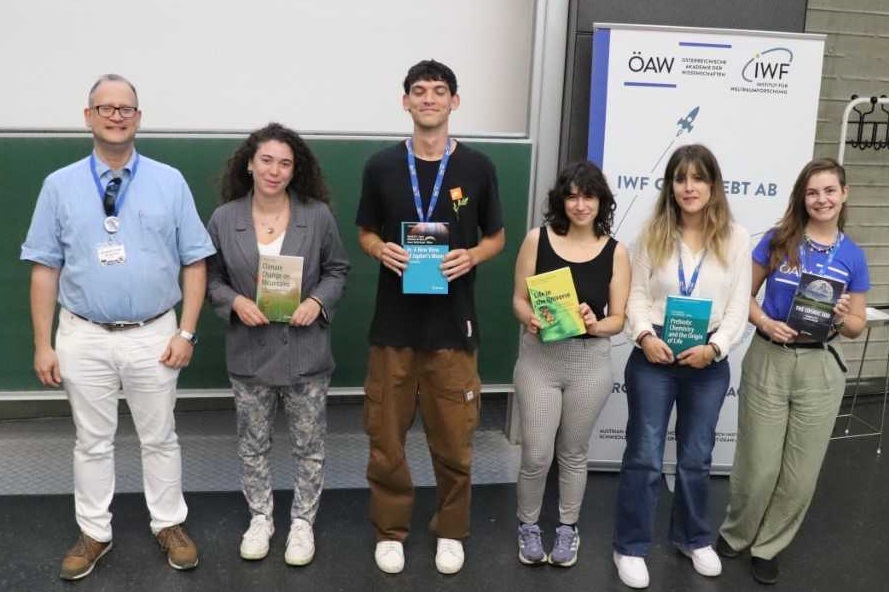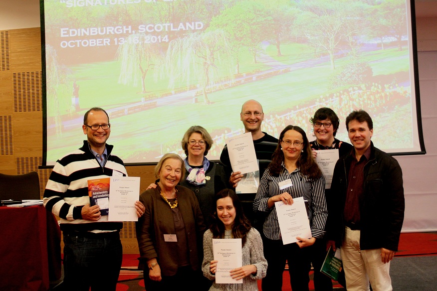 Organizers, awardees and jury members of the poster award: Gerda Horneck, Frances Westall, Iulia Myrgorodska, Simone Martini, Carlos Banchon, Lena Noack, Ralf Möller (for Marina Raguse), Krzysztof Rychert, Kai Finster, Felix Matthias Fuchs, Harry Lehto and Daniela Billi. |