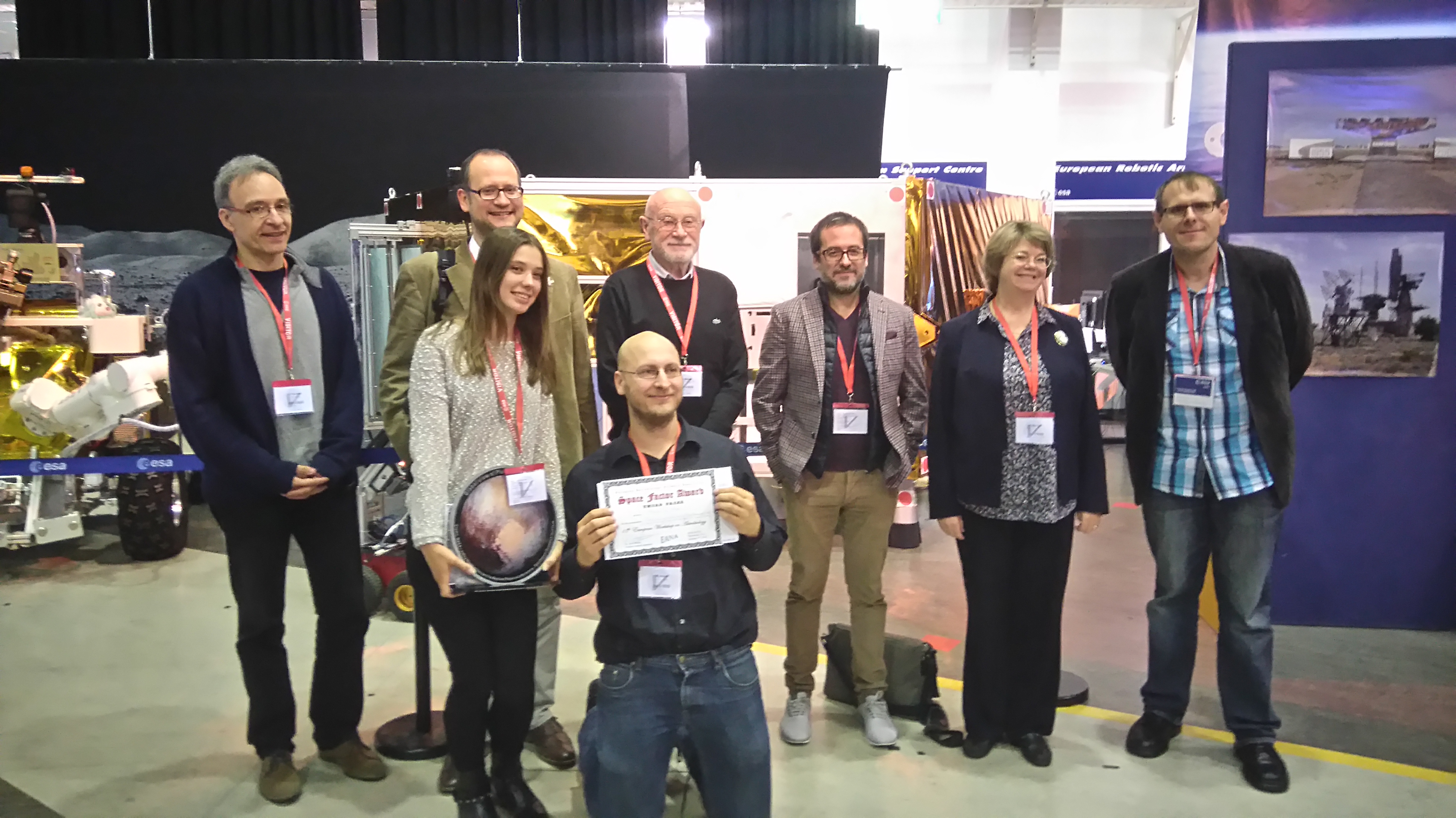 1st and 3rd prize winners of the contest with the jury members and organizer of the student contest: Franco Ferrari, Jean-Pierre de Vera, Iulia Myrgorodska, Maximilian Mora, André Brack, José Eduardo González-Pastor, Frances Westall and Ralf Möller. |