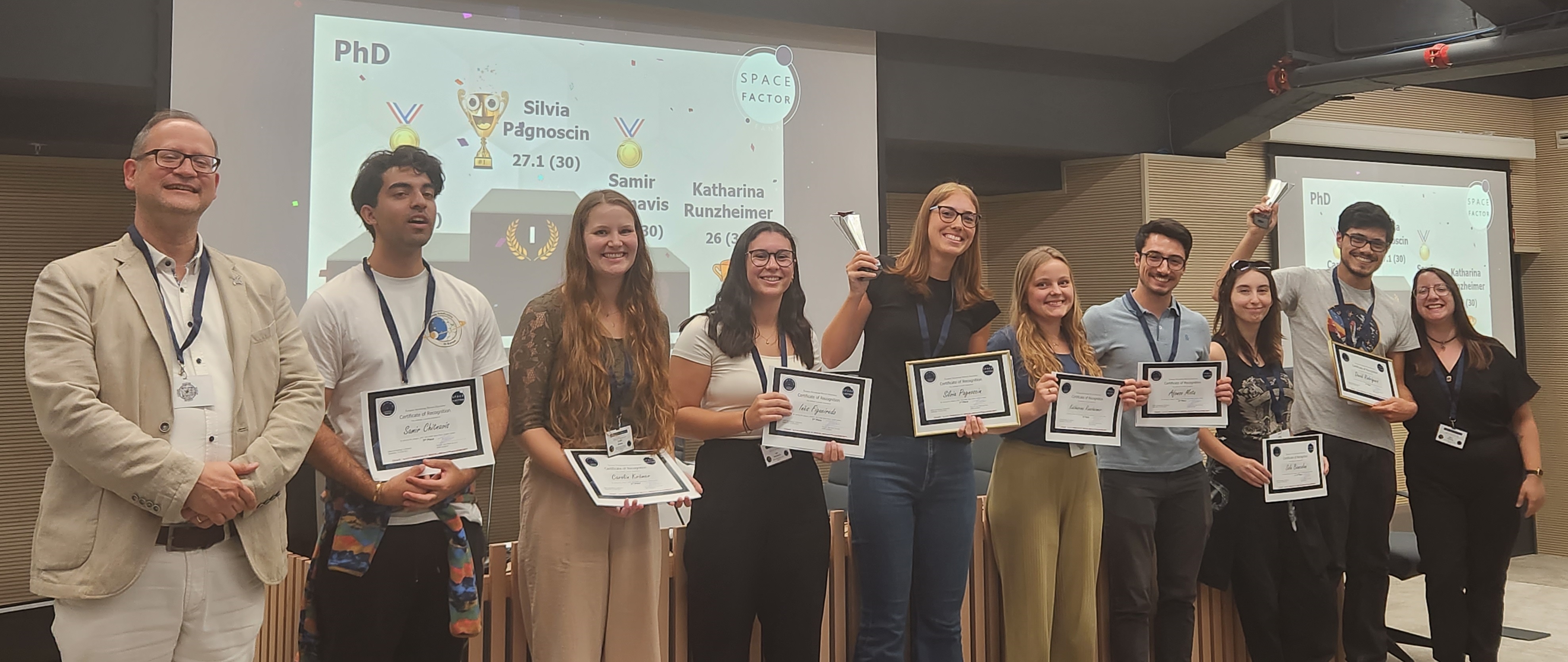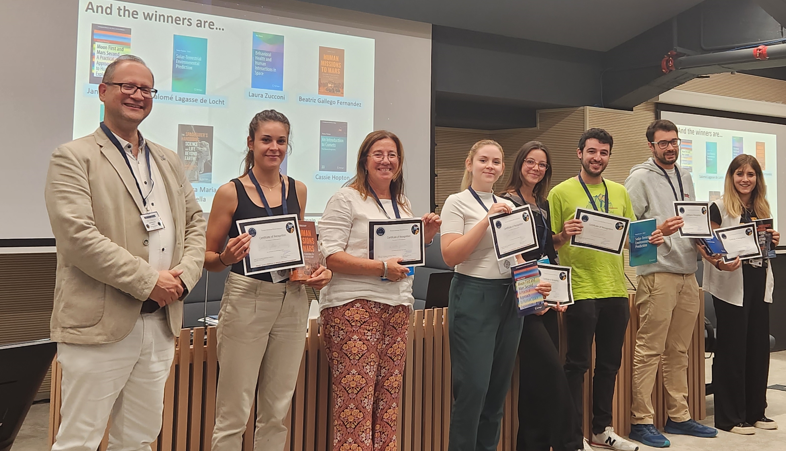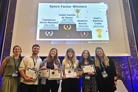 The winners of the 2025 Space Factor contest and the Scientific Outreach Video Contest were awarded with a trophy, cash prize and/or a book donated by the publisher Springer. The award ceremony was led by the Student Contest organizers Stella Timofeev and Carolin Krämer during the closing session of EANA 2025.